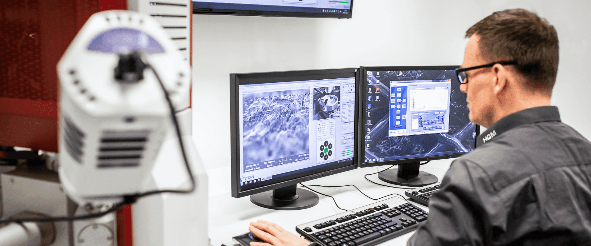 Dazu prüfen wir Bauteile materialtechnisch, überwachen die technische Sauberkeit in der Fertigung, führen maßliche Vergleichsmessungen durch und analysieren die Prozessmedien wie Öle, Kühlschmierstoffe oder Reinigungsbäder.